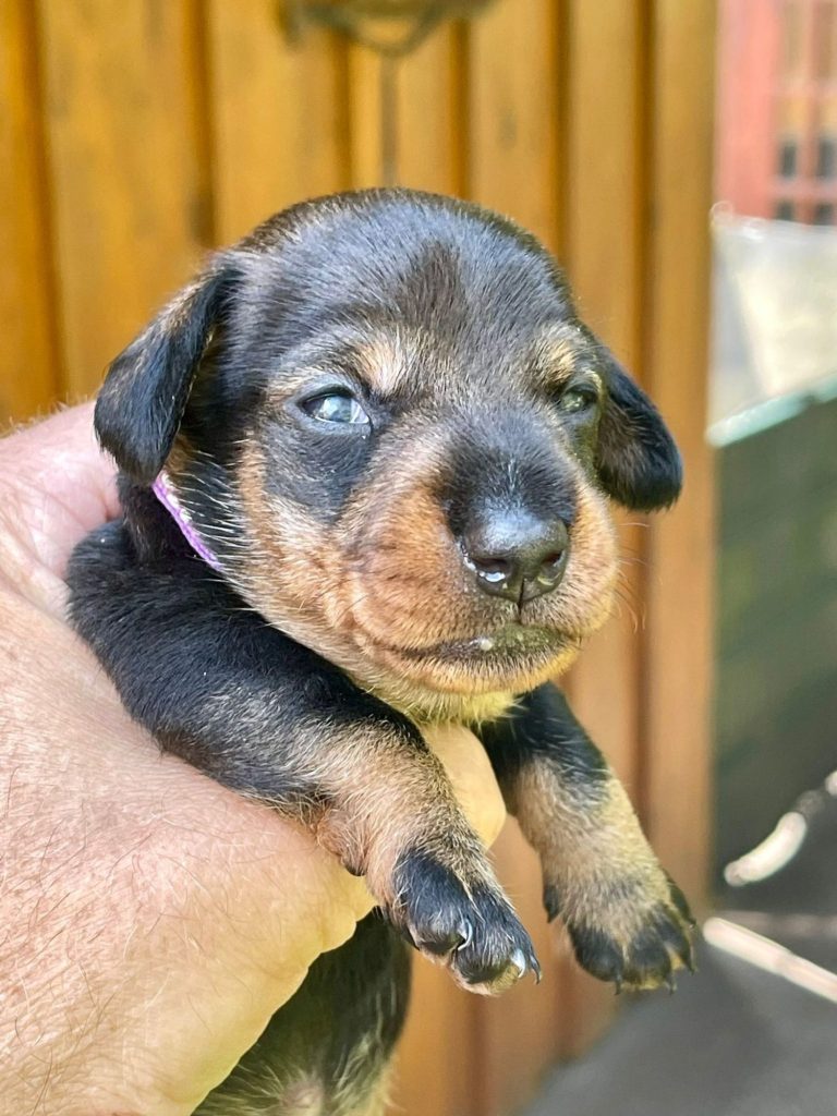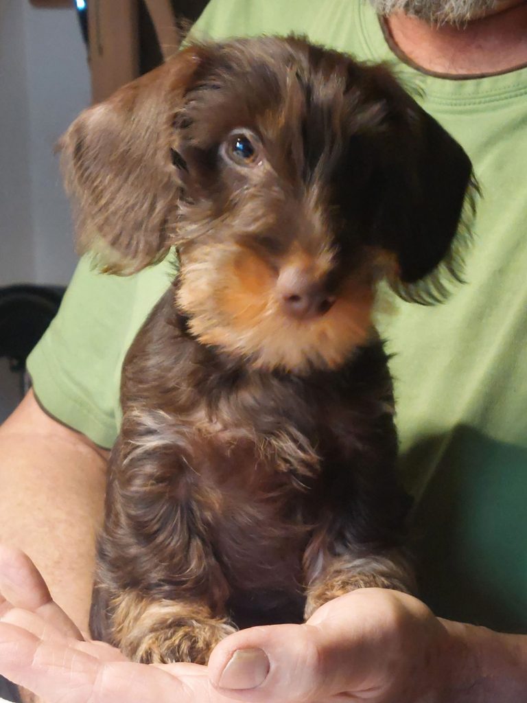 ausgezogen. Er ist mit seiner neuen Familie bei strahlendem Sonnenschein ´gen Bayern unterwegs. Er kommt zu liebenswerten Menschen mit viel Herz für Dackel. Der Abschied ist uns schwer gefallen - Ludwig war terminbedingt eine Weile länger bei uns, als die anderen Welpen und hat uns daher schon viel von seiner zukünftigen Persönlichkeit offenbart.