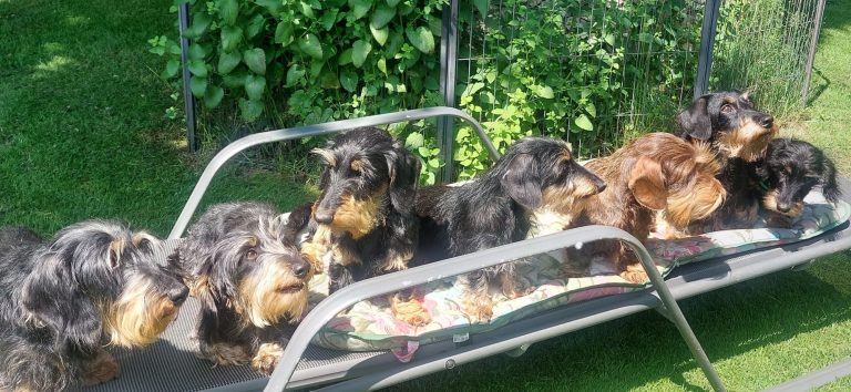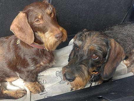 Meine kleine Tochter lebt seit ein paar Wochen zusammen mit Fienes Tochter Karlotta in Duisburg bei lieben Freunden unserer Menschen und unseren liebsten Hundesittern Jutta und Tom . Das hat den charmanten Vorteil, dass wir sie sehr oft sehen und mit ihr spielen können. Karlotta und Viva sind somit immer wieder Teil unseres Rudels. Ich bin immer superglücklich , wenn das Duisburger Auto auf den Hof rollt, weil dann wieder Dackelparty bei uns angesagt ist.