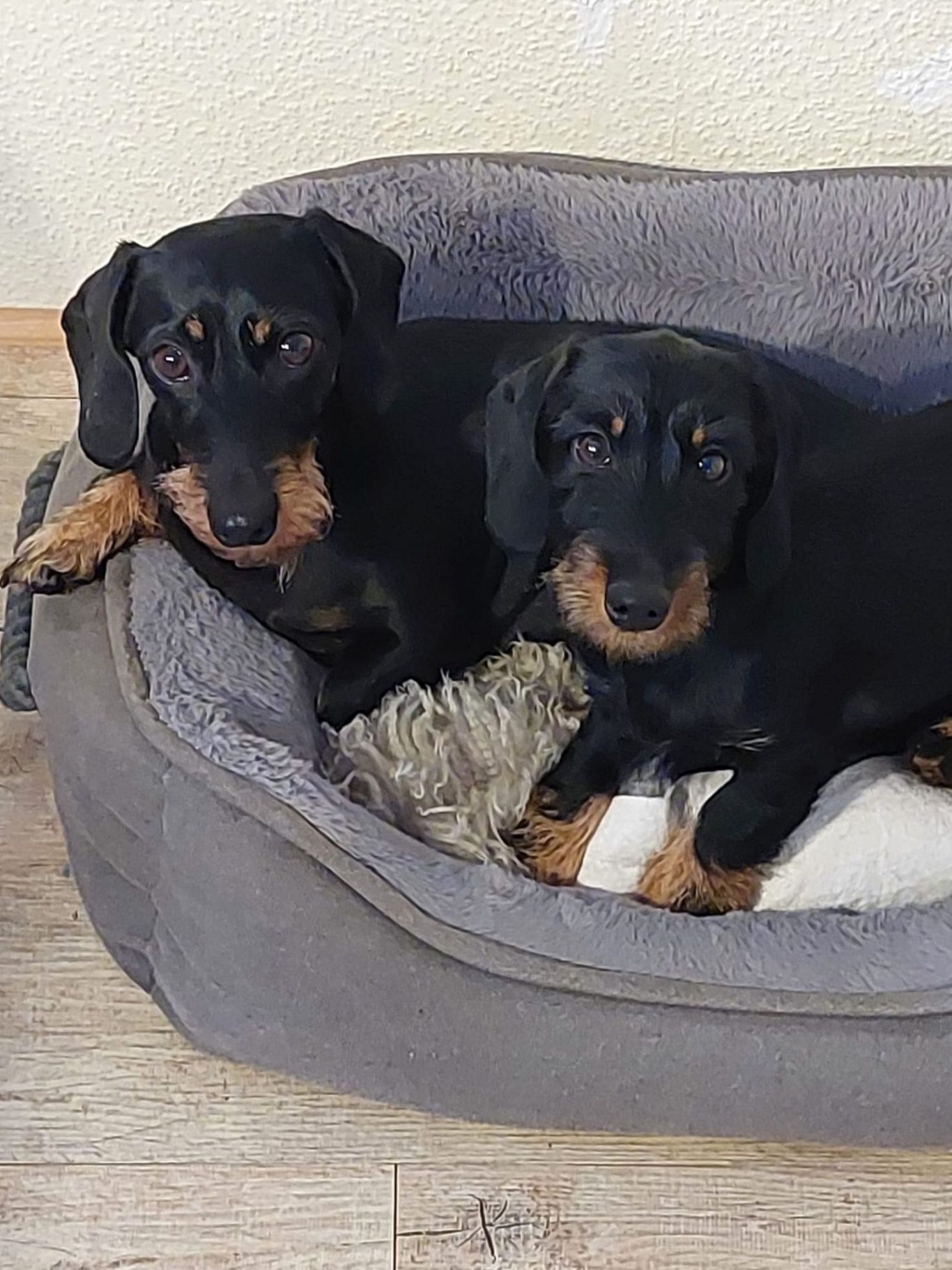 Es ist für uns sehr beruhigend, wenn unsere "Kinder" sich in ihren neuen Familien wohlfühlen und Freude verbreiten. Dass es nicht immer ohne Frust und Unmut abgehen wird,versteht sich von selbst - schließlich ist ein Dackel eingezogen, ein Hund der gezüchtet wurde, um eigene Entscheidungen zu treffen.