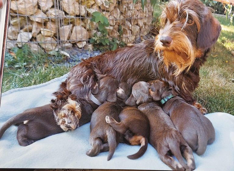 Dafür bekomme ich aber schöne Nachrichten von meiner Urenkelin und meiner Tochter, die im Abstand von 2 Wochen ihren Leuten jeweils ganz tolle Würfe in die Wurfkisten gelegt haben. Ich bin superstolz auf die Mädels. Meine schöne Urenkelin hat vor 4 Wochen 6 gesunde Fellbündelchen auf 4 Pfoten völlig problemlos auf die Welt gebracht .